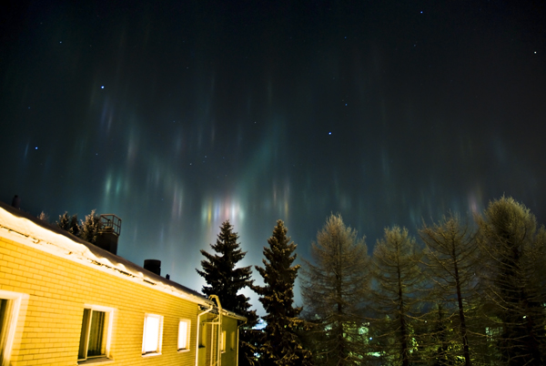 It was an apparition of light pillars, caused by urban lights reflected from ice crystals in the air. "They danced in the icy sky like auroras as a few Geminids flew past in the background. All in all, it was a lovely spaceweather day!"