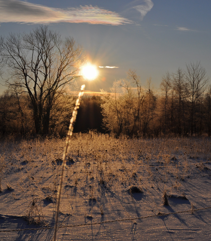 Ice in the air. Ice on the ground. Add a dash of sunlight and voila!--a lovely snapshot.