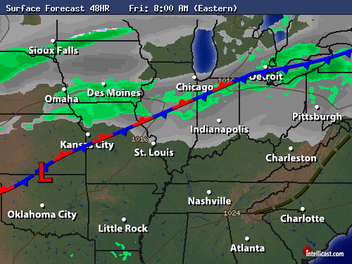 You can see above looking at the Friday morning surface chart that this slow moving stationary front is what will cause for a few light hit and miss scattered rain showers. Again nothing heavy however rain is rain and I must forecast it! lol. Here's your detailed quick cast below.